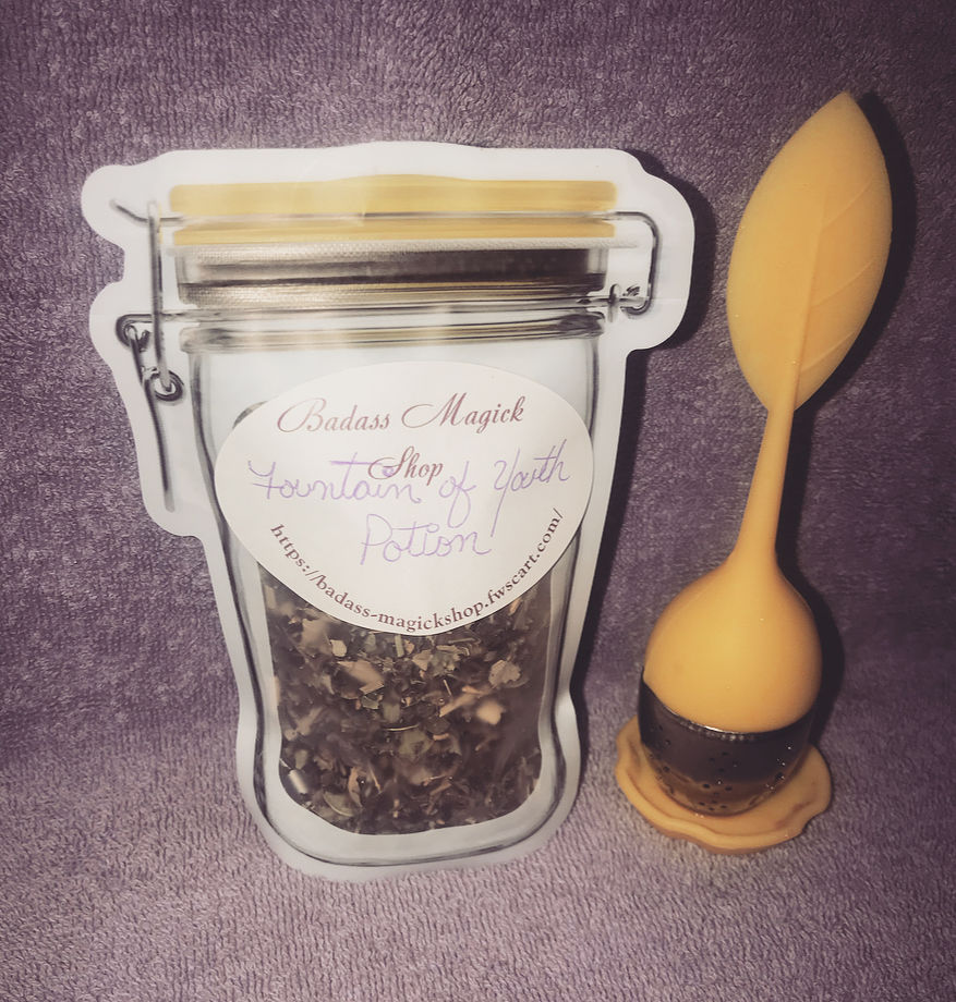 Drink this magickal blend to boost your energy,, supercharge your immune system,  and reverse the physical aging process.t This gourmet tea kit comes with a loose tea infuser and a re-usable rose quartz or tigers eye opal charging heart to use while drinking.  The original price ($11.11) is for the TEA ONLY.