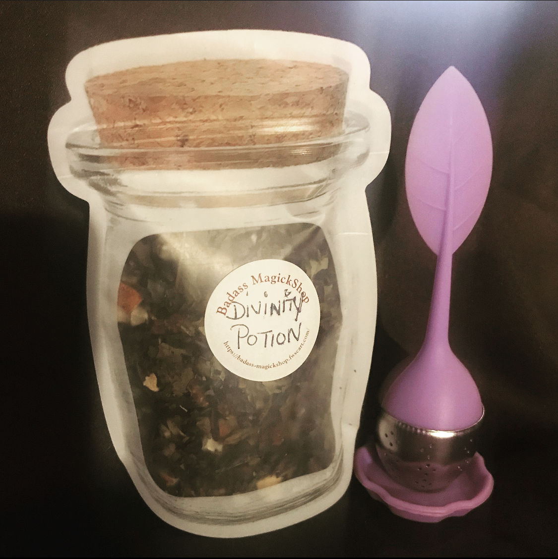 Sip this exotic medley of organic teas, fruit, and jasmine jade pearls to heighten your spiritual awareness, making it easy for you commune with your angels, ancestors, and spirit guides during meditation. This tea kit comes with a loose tea infuser, matching drain tray and a reusable rose quartz heart for charging your potions while drinking. (Large sized teas come with a larger tigers eye opal heart) The original price ($11.11) is for the TEA ONLY,
